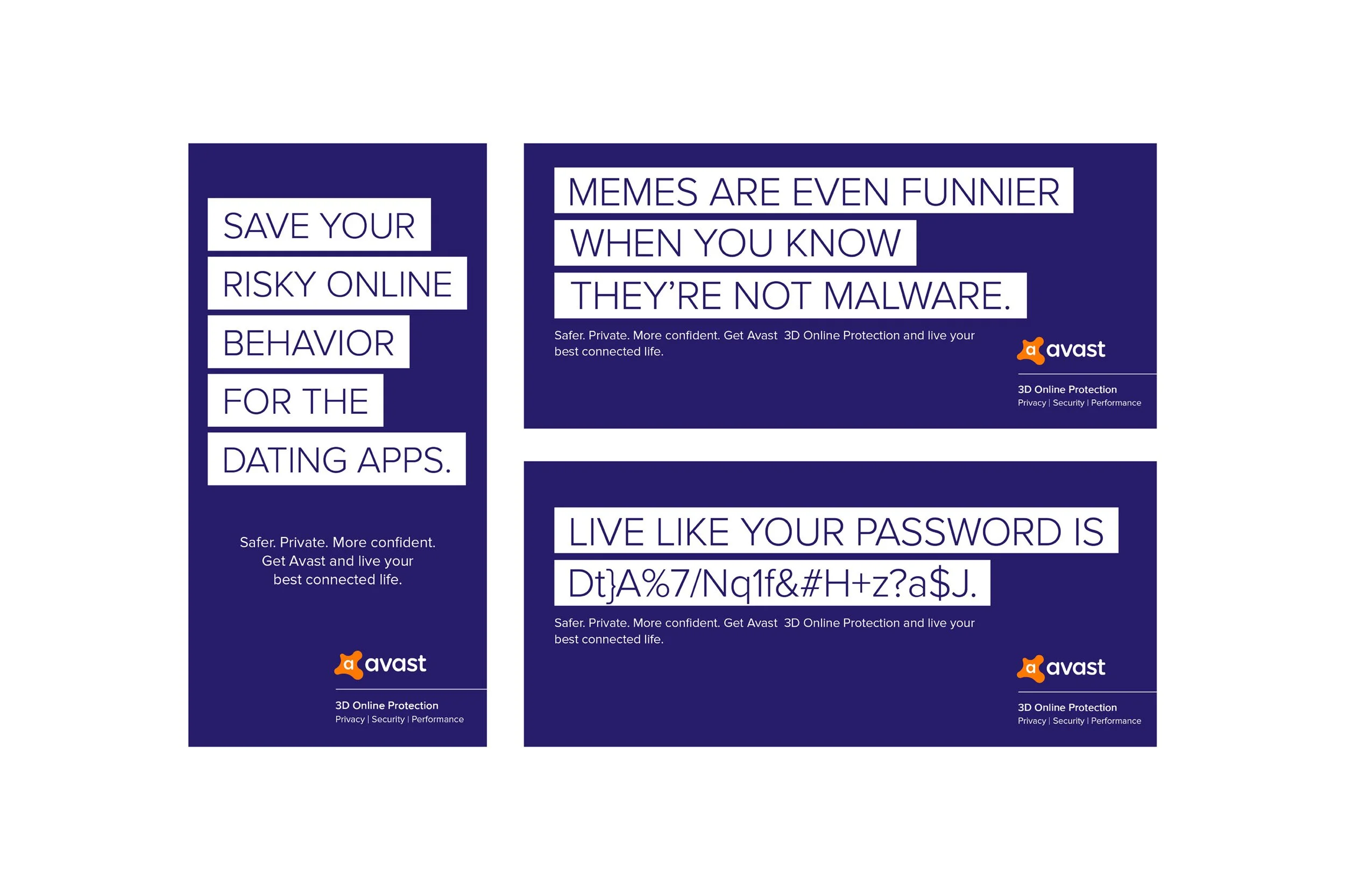 We uncovered a powerful insight: people don’t want antivirus—they want freedom to live their digital lives securely and without friction. So, we reframed Avast as a liberator, not a gatekeeper. Anchored in a “3D Protection” platform—Device, Data, and Digital Identity—we built a modular campaign toolkit and unified messaging ecosystem, all centered around the idea of “Living Your Best Connected Life.”